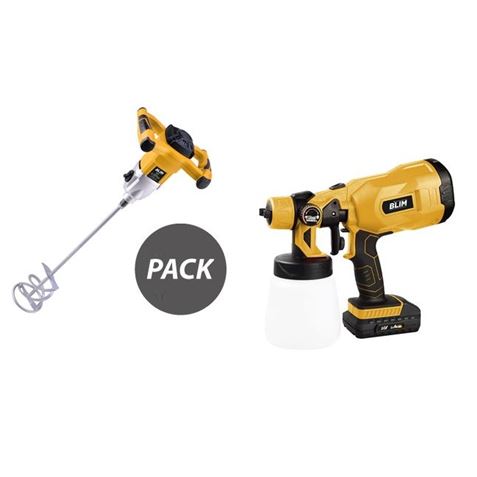 PACK MEZCLADOR ELECTRICO 1500W + PISTOLA PINTAR 20V 2AH BLIM